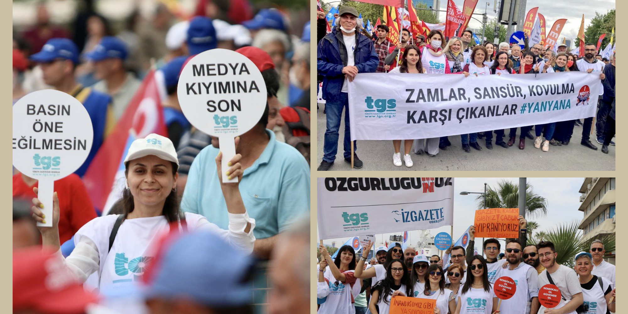 Türkiye Gazeteciler Sendikası İstanbul’da Maltepe’de gerçekleşen 1 Mayıs kutlamasına katıldı. Ayrıca Ankara, İzmir, Adana şube yöneticilerimiz ve üyelerimizle birlikte alanlardaydık. Temsilciliklerimizin bulunduğu Diyarbakır, Mersin, Eskişehir ve Kocaeli’de de ‘zamlar, sansür, kovulma / karşı çıkanlar #Yanyana’ dedik.