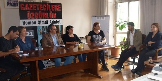 Toplantıya Politika gazetesinden Ayla Boran, Yürüyüş dergisi adına Av. Naciye Demir, T24’ten Michelle Demishevich, Zaman gazetesinden Emre Şencan, Kızıl Bayrak gazetesinden Ersin Özdemir konuşmacı olarak katıldı.