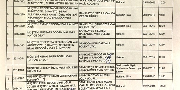 Cumhurbaşkanı Recep Tayyip Erdoğan, Emine Erdoğan ve Bilal Erdoğan’ın gazeteciler Can Dündar, Utku Çakırözer, Hakan Gülseven ve Nazlı Ilıcak’a açtığı davalar İstanbul 2. Asliye Ceza Mahkemesinde görüldü.