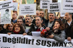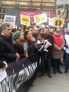 İstanbul’da TGS ve DİSK Basın-İş’in ortak düzenlediği yürüyüş Tünel’den başladı.”işten atmalar, tutuklamalar, baskılar bizi yıldıramaz”, “Özgür basın susturulamaz”, “Halkın haber hakkı engellenemez”, “Susma haykır, özgür basın haktır”, “Zindanlar boşalsın, gazetecilere özgürlük”, “AKP elini medyadan çek” sloganlarıyla Galatasaray Lisesi önüne kadar süren yürüyüşün ardından basın açıklaması yapıldı. Can Dündar ve Erdem Gül’ün meslektaşlarına yazdıkları mektubu ise Dilek Dündar okudu.