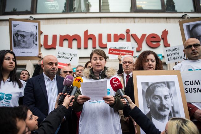 Türkiye Gazeteciler Sendikası (TGS) yönetici ve üyeleri, Akit TV sunucusunun canlı yayında Cumhuriyet Gazetesini hedef alarak söylediği “Hadi gidelim. Hep birlikte toplanıp Cumhuriyet Gazetesi önüne…