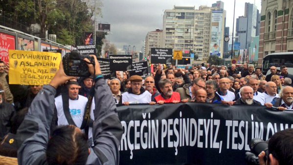 Gazetecilere Özgürlük Platformu (GÖP), Cumhuriyet Genel Yayın Yönetmeni Can Dündar ve Ankara Temsilcisi Erdem Gül’ün tutuklamasını protesto etmek için Cumhuriyet binasına yürüdü. Türkiye Gazeteciler Sendikası…