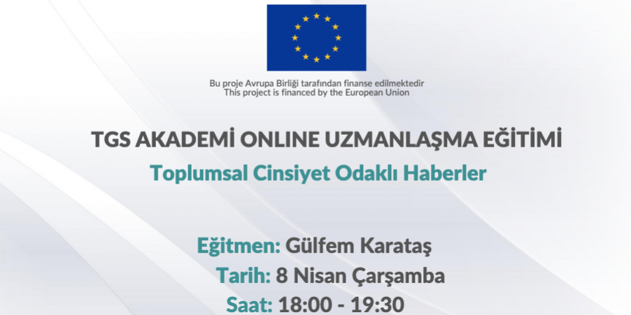 TGS Akademi, pandemi nedeniyle kapalı olan binasındaki eğitimlerini online mecralara taşıdı. TGS Akademi webinarlarının ikincisinin başlığı Toplumsal Cinsiyet Odaklı Haberler olacak ve 8 Nisan’da online olarak Zoom uygulaması üzerinden gerçekleşecek.